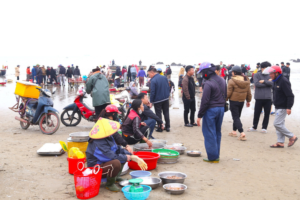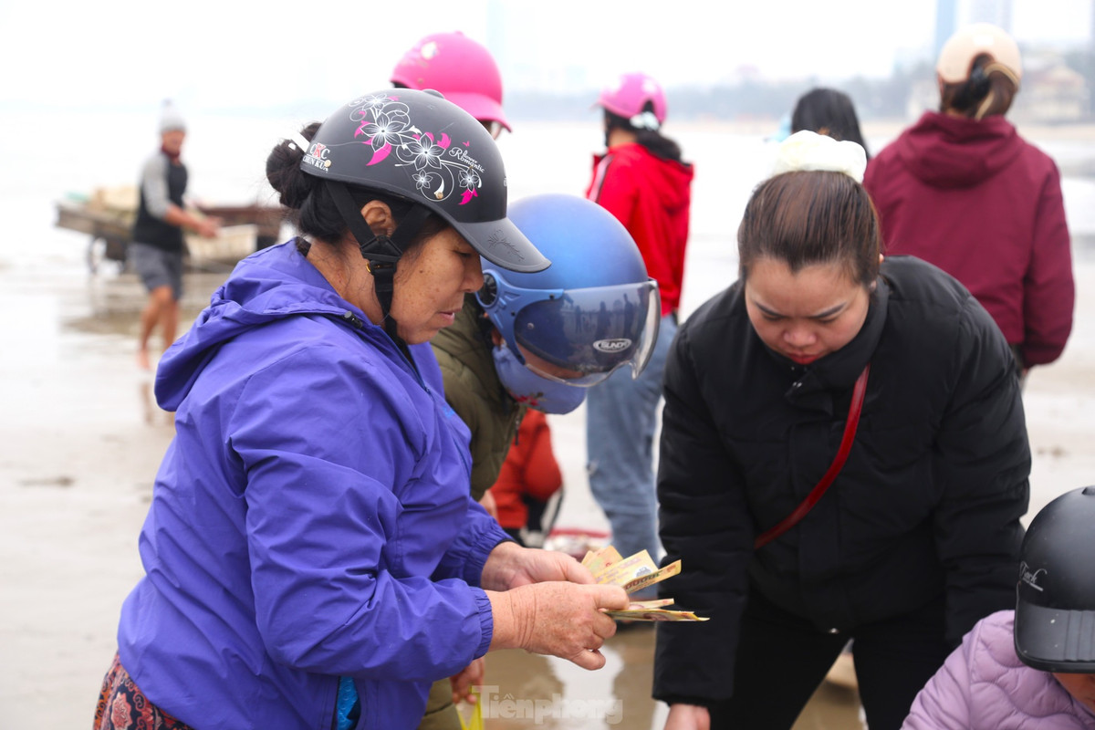 Tôm, cá, mực... sau khi đánh bắt nhanh chóng được ngư dân bán ngay tại bãi biển.