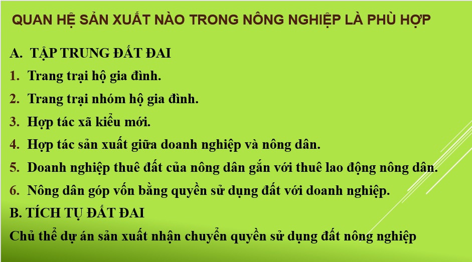 Tập trung và tích tụ đất sản xuất nông nghiệp trong đổi mới mô hình tăng trưởng