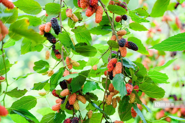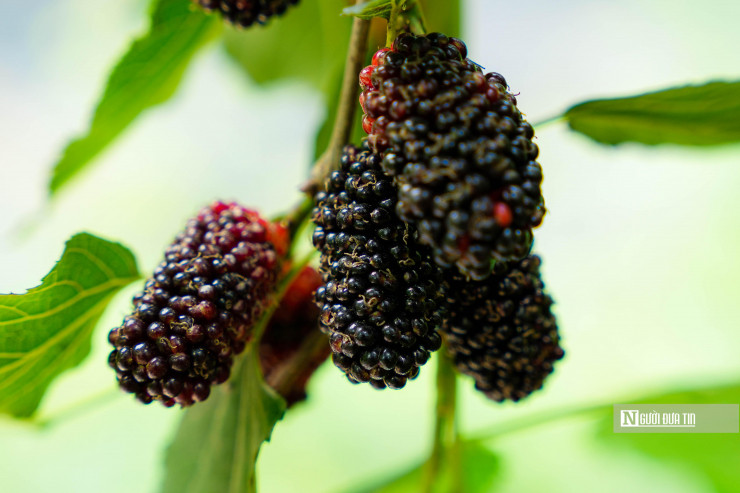 "Dâu tằm khi chín cần thu hoạch nhanh, nếu không sẽ chín quá và rụng. Thời điểm này, 70 gốc dâu trong vườn gia đình tôi đều đang chín rộ. Vào chính vụ, để hái kịp số lượng giao cho lái buôn, gia đình có ngày quên cả ăn trưa", bà Xoan nói.