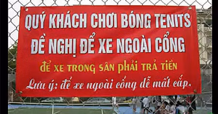 Một tấm biển quảng cáo độc lạ, phiên âm "Quét tờn u niền".