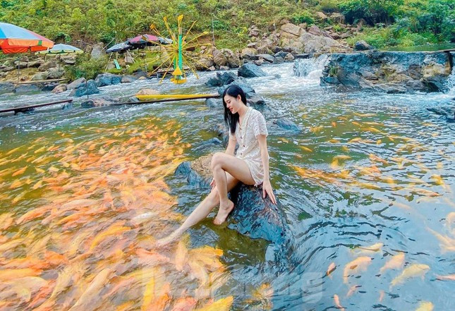 Một dòng suối chỉ dài hơn 500m với hàng chục nghìn con cá vàng đang thu hút nhiều du khách đến tham quan, trải nghiệm, đặc biệt là các bạn trẻ.