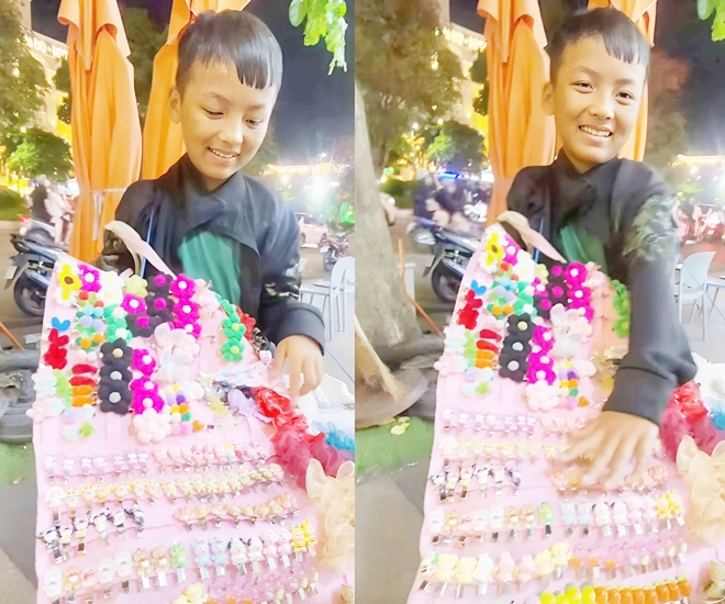 - Cậu bé rất ngoan và lễ phép, mình cũng đã gặp và mua ủng hộ vài chiếc kẹp tóc. Dù khách có hỏi nhiều thế nào, thậm chí hỏi xong không mua, bé vẫn lễ phép chào khách.