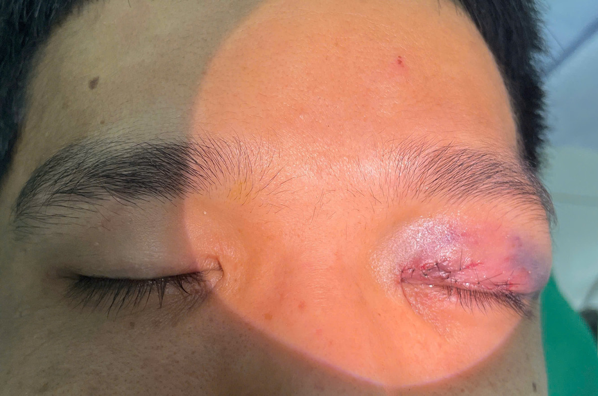 Người bệnh là anh T.V.T (32 tuổi, trú tại phường Lương Sơn, tỉnh Thái Nguyên) nhập viện trong tình trạng rách góc mắt trong, đứt lệ quản trên, rách da mi phức tạp và dập nát tổ chức mi, bao gồm cả phần sụn mi - một tổn thương nặng, nguy cơ ảnh hưởng nghiêm trọng đến chức năng thị giác và thẩm mỹ vùng mắt.