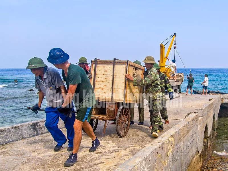 Cán bộ, chiến sĩ Ra đa trên Đảo Trường Sa đón nhân dân đất liền ra thăm.