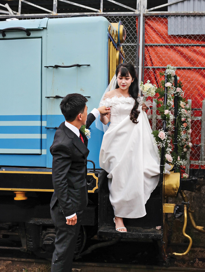 Bên cạnh việc vận tải thuần túy thì ngành đường sắt đang mở thêm nhiều dịch vụ, tạo dấu ấn với người dân, du khách (Trong ảnh: một đám cưới được tổ chức ngay trên chuyến tàu du lịch Đà Lạt - Trại Mát). Ảnh: C.T