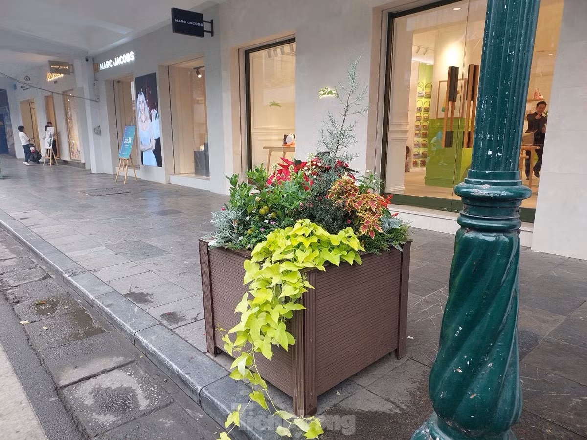Những bồn hoa trên vỉa hè phố Tràng Tiền, phố Nguyễn Xí được thay mới với sắc màu rực rỡ.