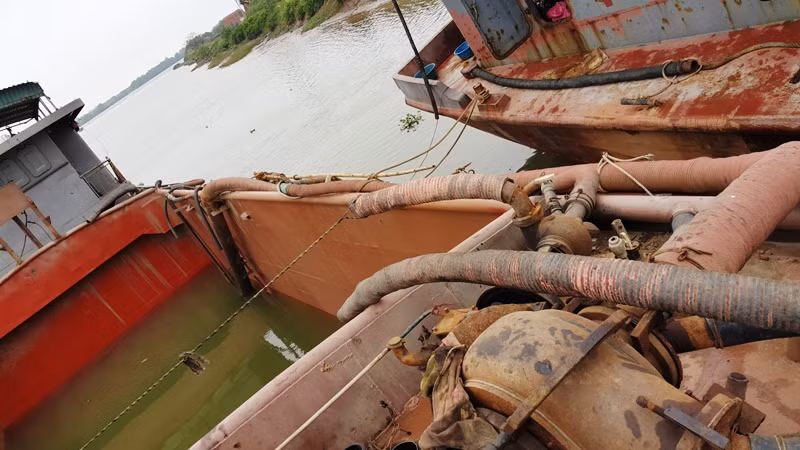 Ngay khu vực giáp ranh xã Đại Đức, thuộc huyện Kim Thành, tỉnh Hải Dương, một tàu mang số hiệu Hải Phòng thản nhiên chọc vòi xuống sông để hút cát. Những tiếng nổ của tàu vang dội cả khúc sông, khói đen từ máy nổ bay ra nghi ngút, gần chục người đàn ông trên tàu đã cặm cụi làm những công việc mà hàng ngày họ vẫn làm là... “hút cát dưới lòng sông”.