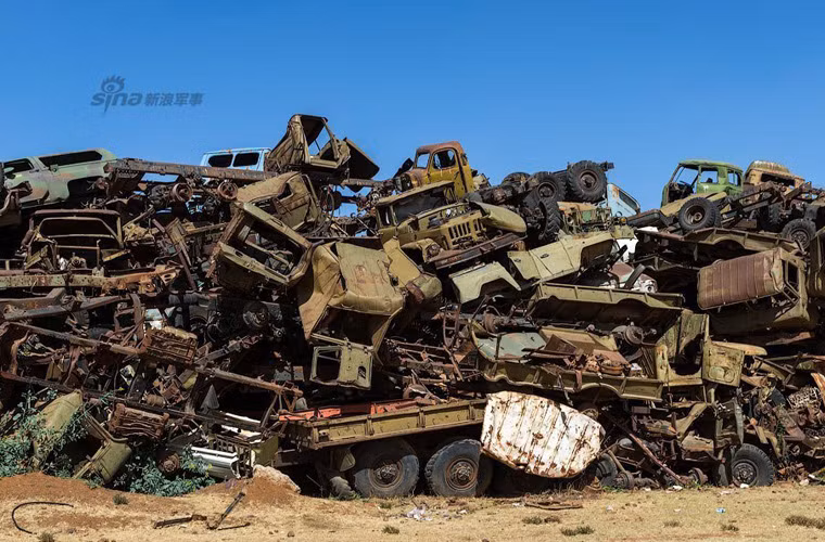(Kiến Thức) - Các loại xe tăng, thiết giáp, ô tô, pháo có nguồn gốc từ Liên Xô được “đắp đống, đắp cồn” ở ngoại vi thành phố ở Ethiopia.