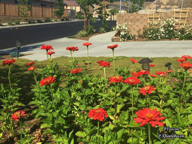 Ngoài ra, chị cũng học được cách sắp xếp vườn theo màu sắc và theo lớp để các luống hoa được bắt mắt hơn. Đặc biệt, ở Nam California khí hậu rất khô hạn, một tuần chỉ được tưới 3 lần, chị phải tiết kiệm nước rửa rau tưới bằng tay cho cây.