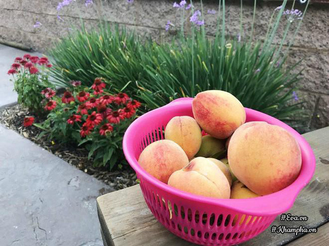 Ở phần đất sau nhà, chị trồng thêm hoa, rau và cây ăn trái còn bên hông sau nhà chị dành để gieo hạt và trồng cây con. Vì khí hậu ở California nắng ấm ôn hòa, không có tuyết nên quanh năm khu vườn của chị luôn rực rỡ sắc màu, hoa trái.