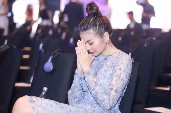 Mặc dù diễn ra vào sáng sớm nhưng Thanh Hằng vẫn thể hiện được sự chuyên nghiệp của mình. "Mẹ chồng" Thanh Hằng xinh đẹp tựa tiểu thư khi diện chiếc đầm ren kết hoa tinh tế phối kèm túi xách nhỏ nhắn thời thượng.