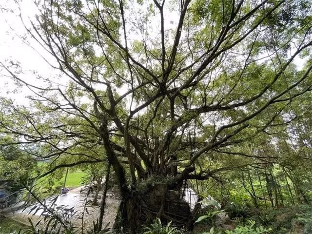 Những cành cây sum suê, to khỏe vươn ra nhiều phía, tỏa bóng mát.