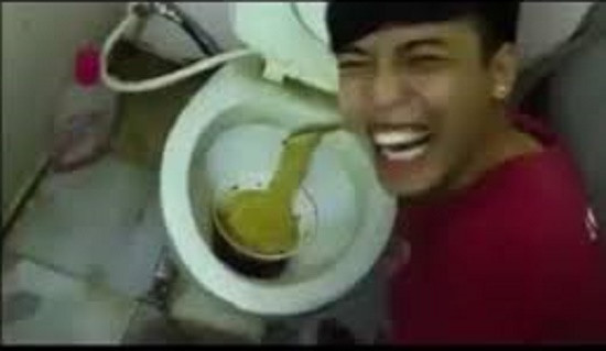 Xuất hiện trong clip, dù cố gắng tỏ ra ăn trong bồn cầu ngon lành nhưng đến cuối cùng, nhân vật không kiềm được mà nôn thốc nôn tháo.
