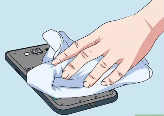 Trong khi cố gắng sửa điện thoại bị dính nước, điều cuối cùng bạn có thể làm là lau khô điện thoại. Trước tiên, bạn cần loại bỏ nước còn đọng lại ở mặt sau và mặt trước của điện thoại. Bạn có thể làm điều đó với một miếng vải mềm. Tuy nhiên, như đã nói trước đó, hãy đảm bảo bạn không nghiêng hoặc lắc mạnh điện thoại để tránh nước lan ra xung quanh.