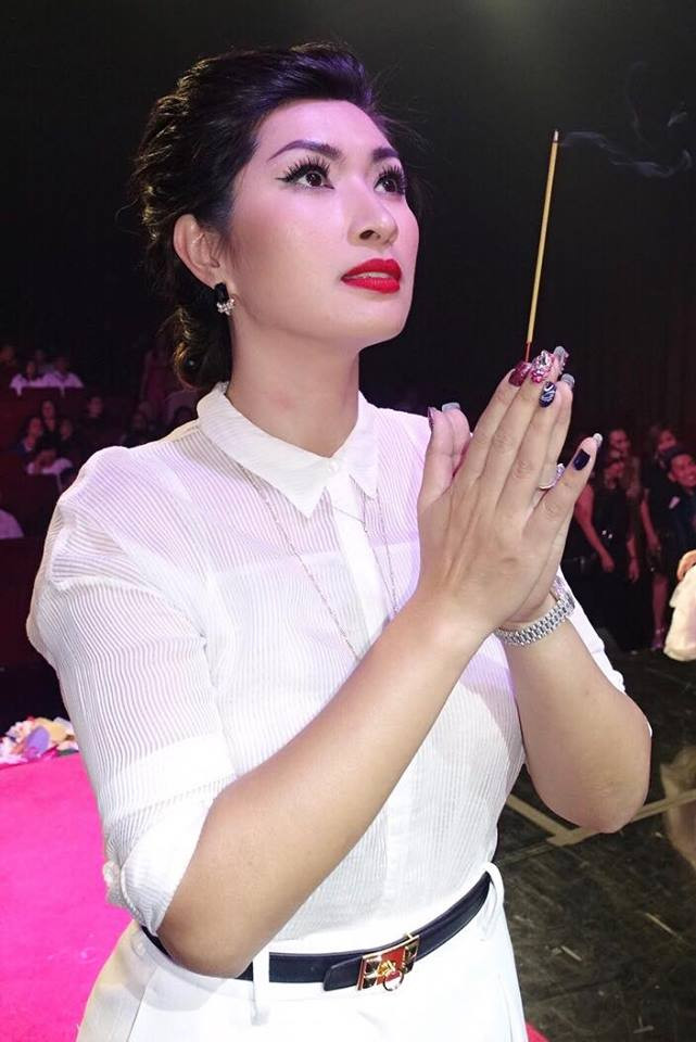 Vừa sinh con đầu lòng ở tuổi 41, ca sĩ Thanh Thảo vẫn có mặt từ rất sớm để dâng hương cúng Tổ nghề.