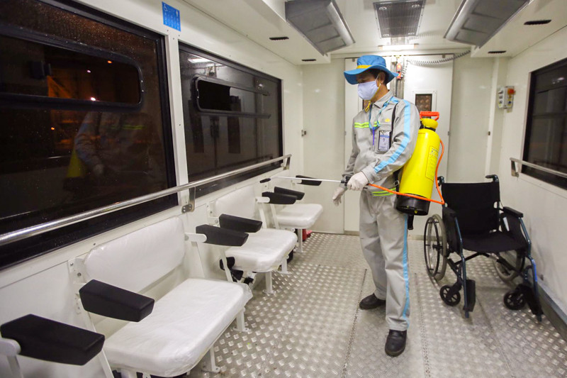 Công tác khử trùng máy bay.