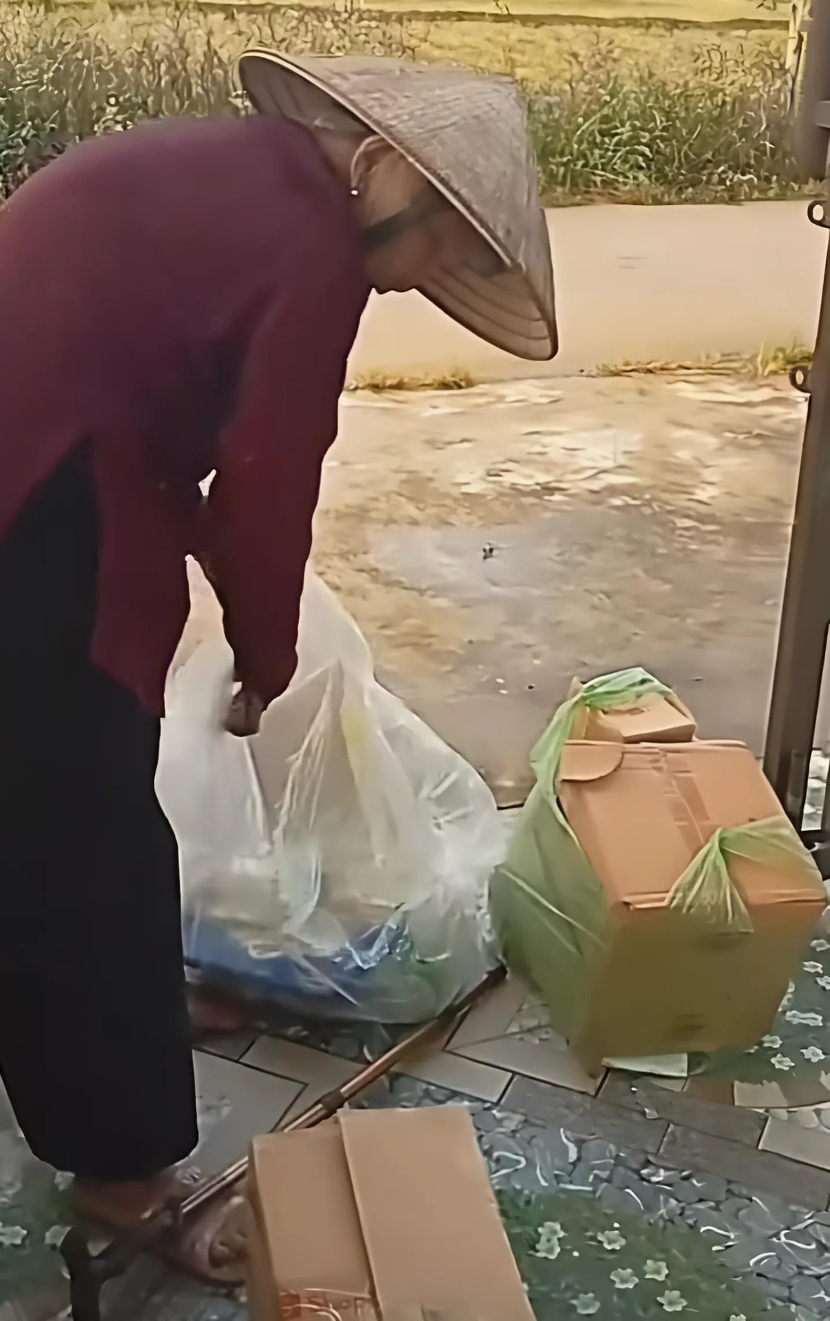 Cụ bà đi thu lượm ve chai cho đỡ buồn chân tay lúc tuổi già