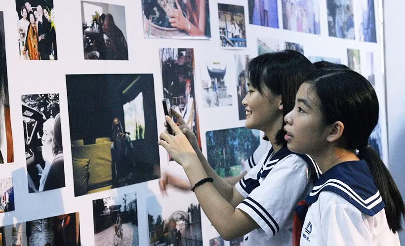 Thế hệ học sinh tranh thủ chụp lại những khoảnh khắc về thầy Văn Như Cương qua những bức ảnh để lưu làm kỷ niệm.