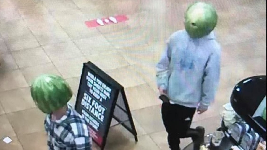 Theo Sở Cảnh sát thị trấn Louisa, hai kẻ trộm lái một chiếc xe bán tải Toyota Tacoma đời 2006 màu đen đến cửa hàng tiện lợi ở thị trấn vào ngày 5.5 vừa qua. Chúng đội trên đầu những quả dưa hấu có đục lỗ ở phần mắt để không bị camera an ninh nhận diện.