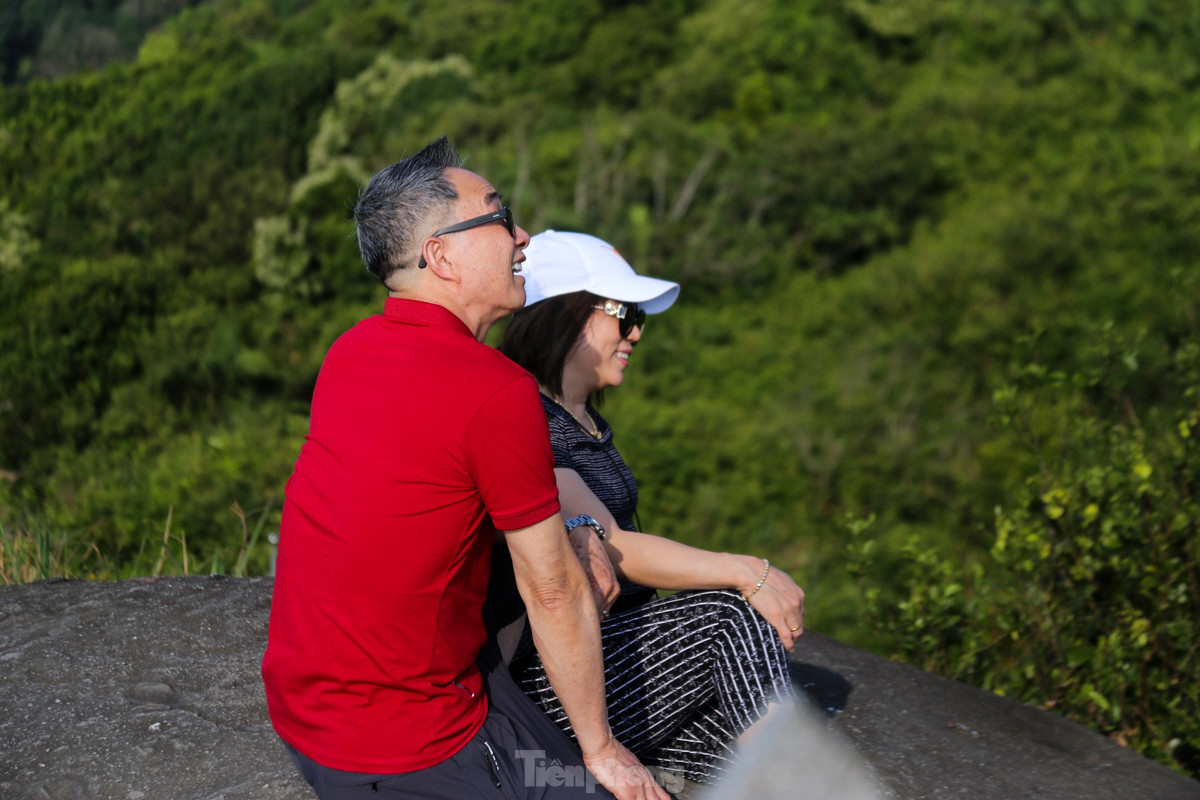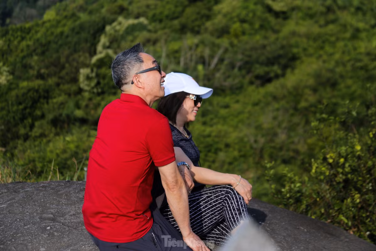 Chị Nguyễn Thị Hoa - du khách đến từ Quảng Nam - cho biết, chị cùng gia đình lựa chọn đỉnh Bàn Cờ là điểm đến để du lịch dịp nghỉ cuối tuần. “Trước đó, tôi đọc được một vài thông tin là tỷ phú nước ngoài đã đến thưởng trà trên đỉnh Bàn Cờ, nên tôi quyết định cùng chồng và các con ra đây xem khung cảnh như thế nào. Đây là lần đầu tiên tôi đặt chân đến và thật sự tôi rất thích bầu không khí này. Gia đình tôi cũng tranh thủ chụp hình để lưu giữ lại kỉ niệm khi đến đây”, chị Hoa nói.