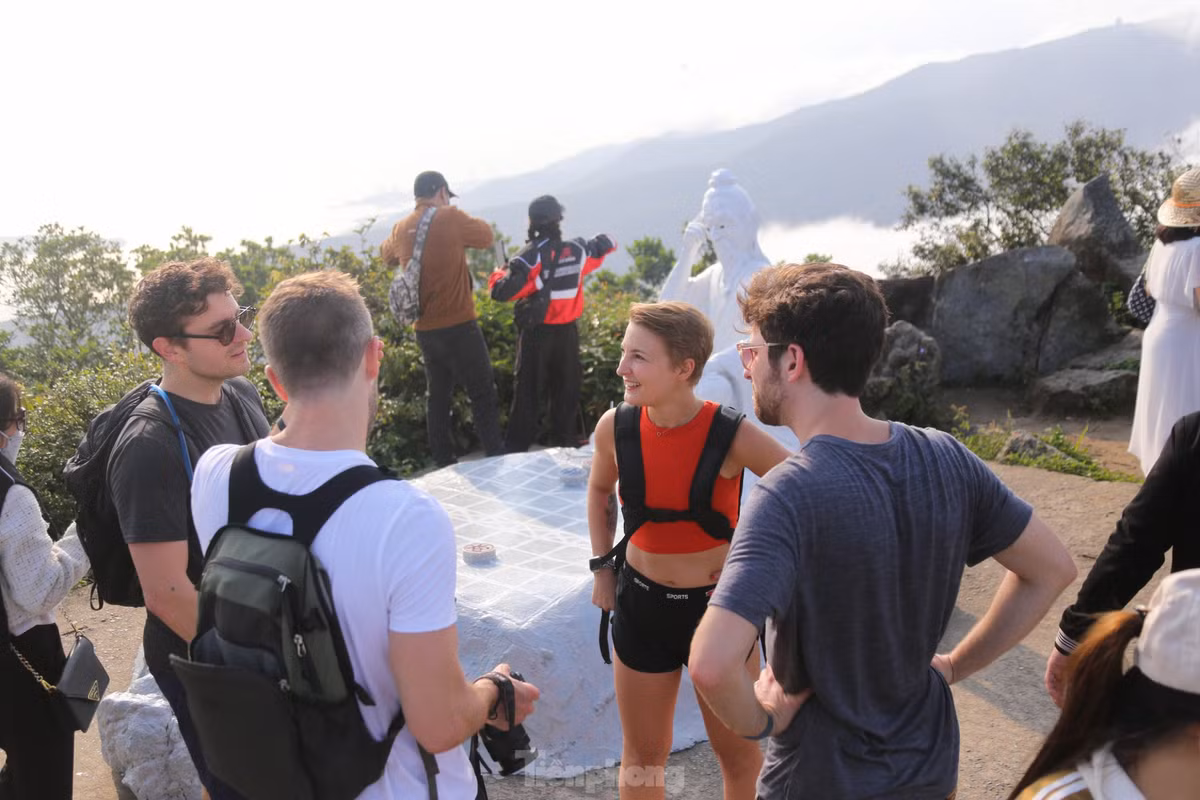 Nhiều du khách đến từ nước ngoài cũng tranh thủ chụp hình, tham quan tại đây.