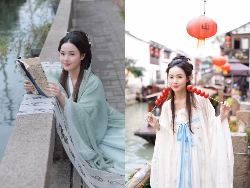 Mi Du đẹp như "thần tiên tỷ tỷ" bên kênh Sơn Đường. Đây là một trong những địa điểm ấn tượng, góp phần mang lại vẻ đẹp tự nhiên và quyến rũ cho khu phố cổ.