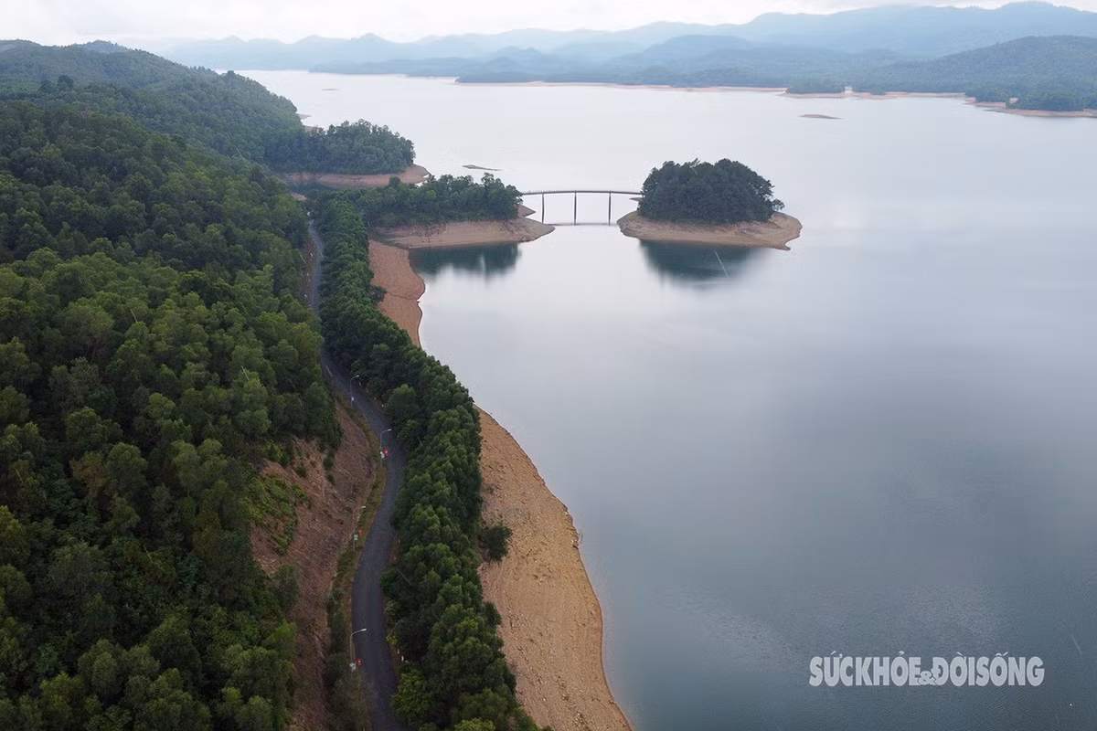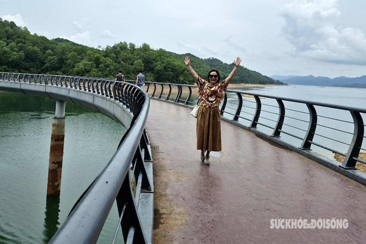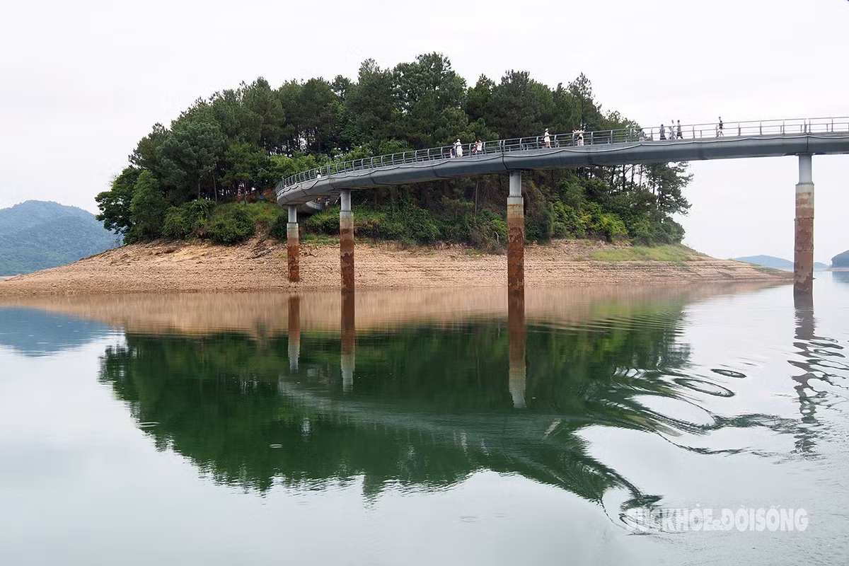 Cầu vượt trên hồ Kẻ Gỗ dài khoảng 132 mét, đường cong uốn như hình chữ C. Đứng trên cầu vượt du khách không khỏi ngỡ ngàng trước vẻ đẹp bình yên nơi đây.