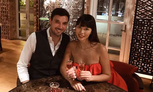 | Khoảnh khắc Hà Anh tình tứ bên ông xã. |