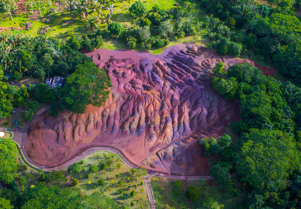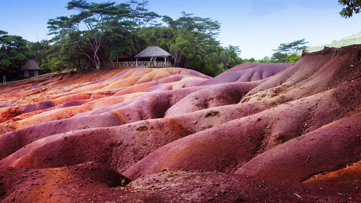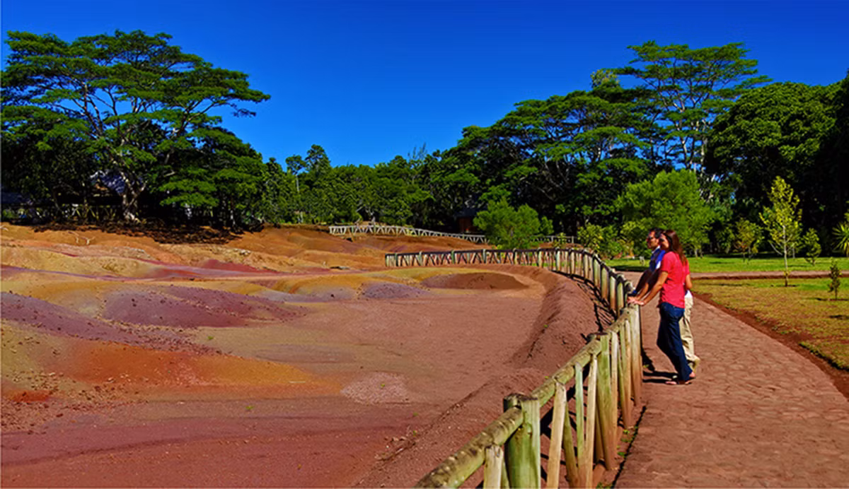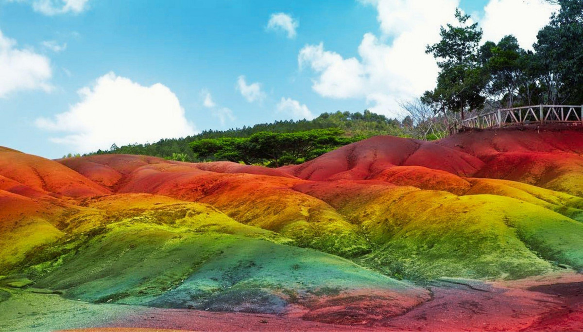 Những cồn cát bảy màu nằm ở rìa ngôi làng Chamarel nổi tiếng thường được ví như một viên ngọc quý gắn vào chiếc vương miện đội trên đầu quốc đảo Mauritius. Seven Coloured Earth có diện tích chỉ khoảng 7.500 m2 bao gồm nhiều đụn cát với những dải màu hệ như 7 sắc cầu vồng.