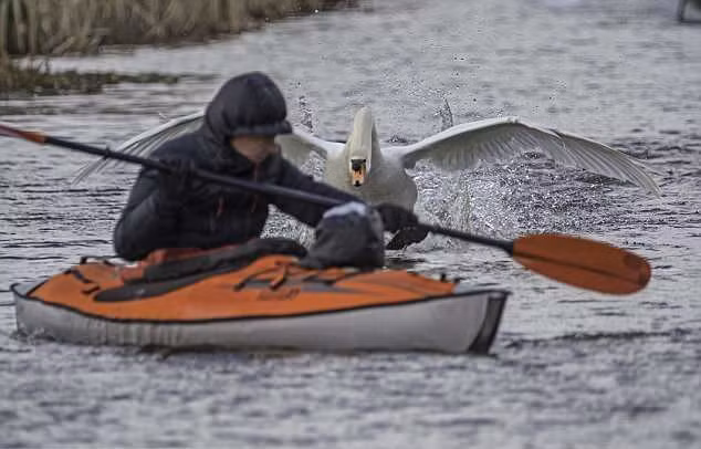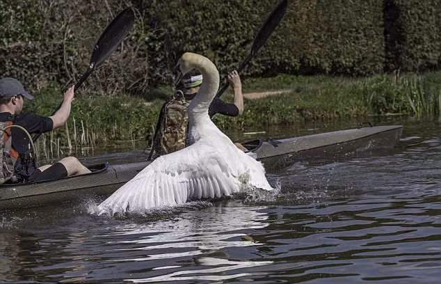 Quá mệt mỏi vì những du khách liên tục làm phiền gia đình bé nhỏ của mình, một con thiên nga trắng đực có tên là Albert, sống trên kênh Grear Western, gần làng Tiverton, Devon, Anh đã nổi điên thực sự, nó lao đến tấn công tất cả những người chèo thuyền đến gần khu vực tổ của mình.