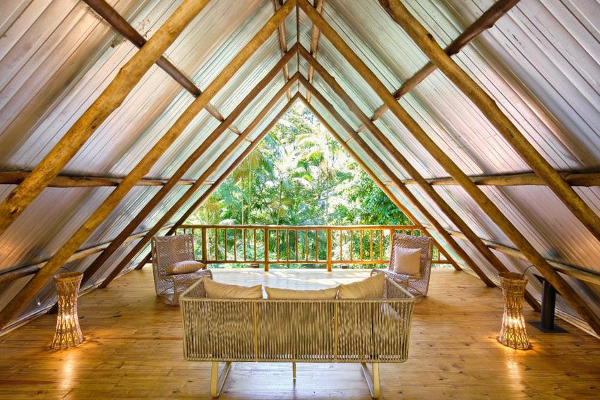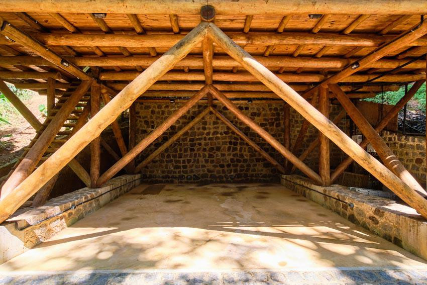 Công trình sử dụng các tấm cách âm Galvalume, đá địa phương để giữ các bức tường bên ngoài, hoàn thiện bằng đất cho những bức tường bên trong và tầng trệt.