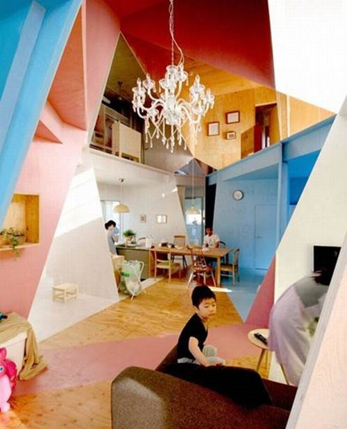 Với những thiết kế độc đáo với những hình tam giác, tứ giác chồng chéo và giao cắt nhau, tạo sự đa dạng và chiều sâu cho không gian ngôi nhà.