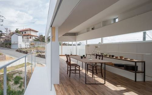 Thiết kế ngôi nhà tạo ra của không gian thoáng bằng cách xây dựng sàn và mái hiên để nhô ra trên các đường lùi.