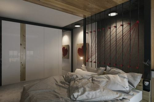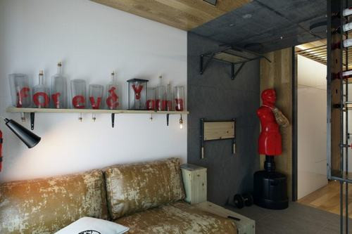 Thiết kế này dường như giúp tăng gấp đôi không gian căn hộ bởi nó cho phép tạo ra một phòng ngủ hoàn toàn riêng biệt trên tầng lửng phía trên phòng khách.