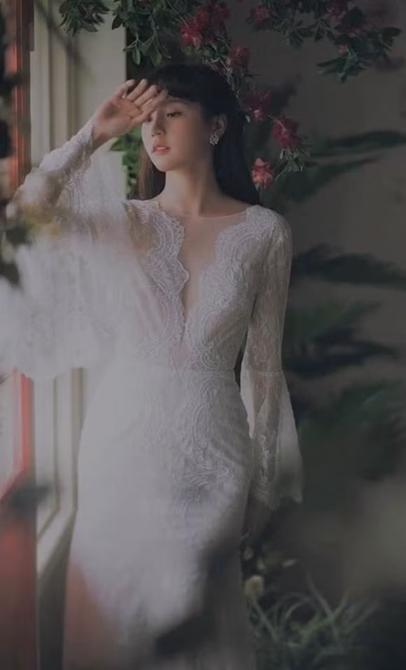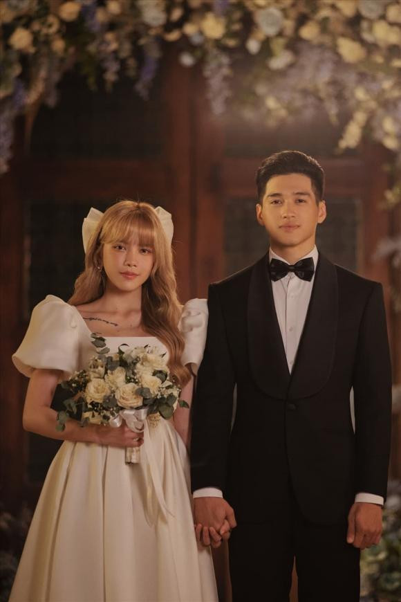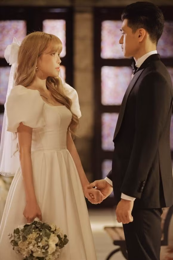 Không kém cạnh Thiều Bảo Trâm, Hải Tú cũng từng khiến người hâm mộ xôn xao với bộ ảnh cưới chụp quảng cáo cho một thương hiệu cách đây khá lâu. Nữ diễn viên thay đổi nhiều kiểu đầm cưới khác nhau, liên tục thay đổi tạo hình. Với kiểu tóc ngắn cá tính, cô trông vừa rạng rỡ vừa ấn tượng. Khoảnh khắc Hải Tú tình tứ bên chú rể còn làm fan ngỡ ngàng hơn.