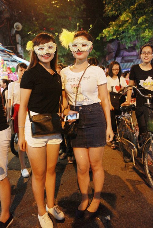 Thiếu nữ Hà thành đua nhau diện những bộ trang phục trẻ trung, gợi cảm đi chơi Trung thu trên phố Hàng Mã, Hà Nội.