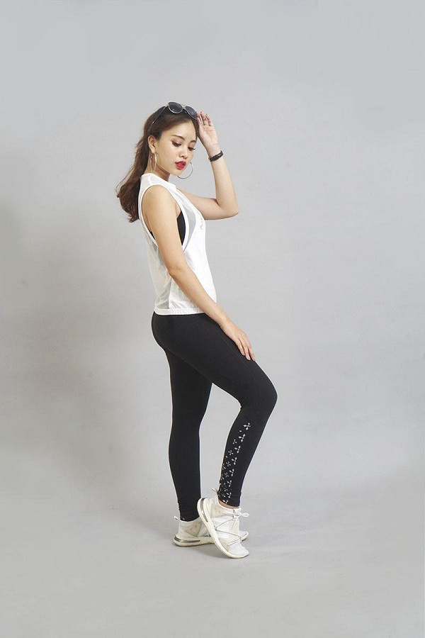 Với đồ tập gym, các nàng nên chọn chất liệu 100% cotton, có độ co giãn. Đặc biệt, áo nên là loại áo croptop hoặc ba lỗ thể thao.