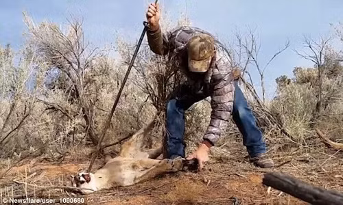 Đoạn phim ghi cảnh thợ săn giải cứu sư tử được quay tại thành phố Helper ở Utah, Mỹ. Con sư tử núi vô tình mắc vào chiếc bẫy vốn được đặt để bắt linh miêu hay chó sói.
