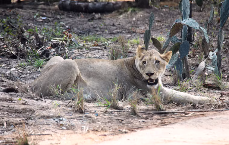 Sư tử Châu Phi đang "rình mồi" tại Vinpearl Safari Phú Quốc.
