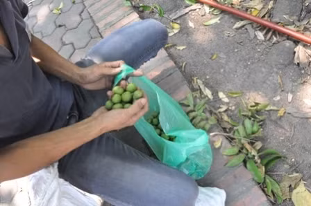 | Sấu non hái xuống được bán ngay trên vỉa hè. |
