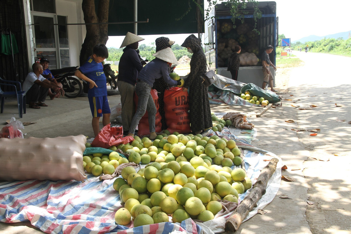 Những ngày này, khắp mọi đường làng, ngõ xóm ở huyện Hương Khê nườm nượp những chuyến xe ngược xuôi chở bưởi. Bưởi được người dân đóng từng bao tải để vận chuyển cho khách.