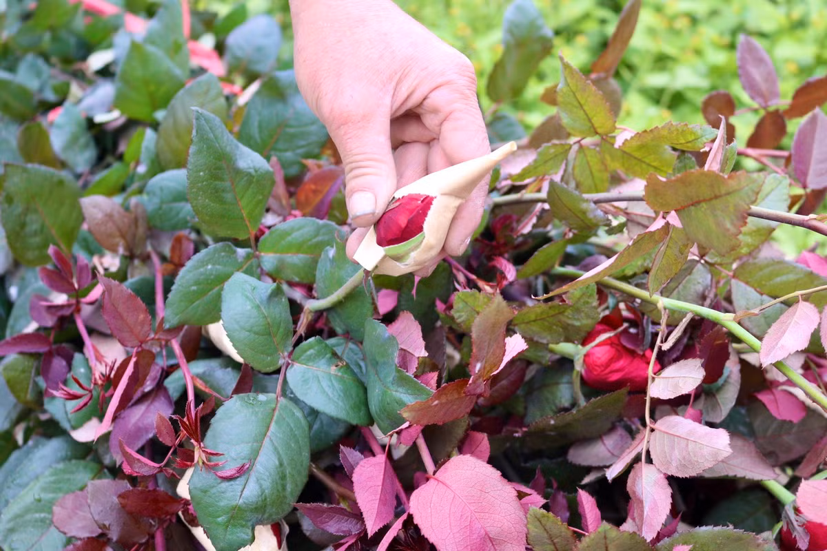 Những bông hồng đến độ thu hoạch sẽ "xé" giấy và chồi ra một phần. Theo người trồng hoa cho biết những bông hoa này đem về cắm nước thì khoảng 2-3 ngày là sẽ nở đẹp.