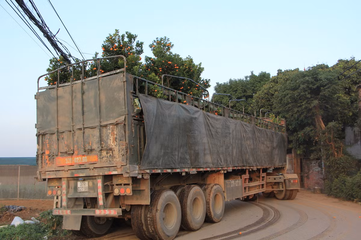 Những chiếc xe len lỏi vào tận vườn để nhận quất.