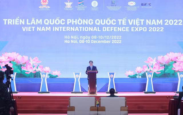 Thủ tướng Phạm Minh Chính phát biểu tại Lễ khai mạc Triển lãm Quốc phòng quốc tế Việt Nam 2022. Ảnh: Dương Giang - TTXVN