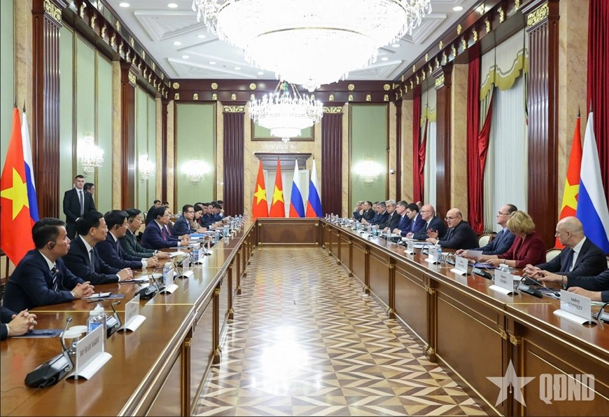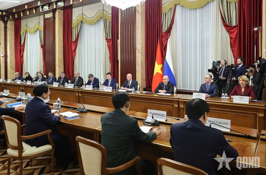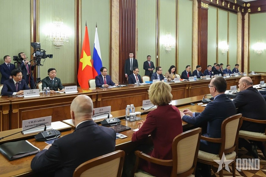 Thủ tướng Mikhail Mishustin đánh giá cao ý nghĩa chuyến thăm lần này của Thủ tướng Phạm Minh Chính và khẳng định Nga coi trọng quan hệ Đối tác chiến lược toàn diện giữa hai nước, coi Việt Nam là đối tác quan trọng hàng đầu tại khu vực châu Á-Thái Bình Dương và luôn mong muốn nâng cao hơn nữa hiệu quả hợp tác song phương trên tất cả các lĩnh vực.