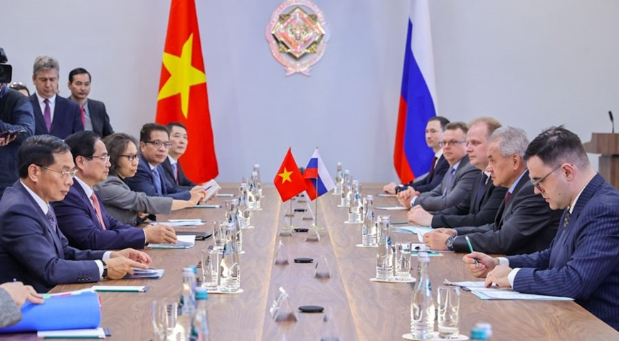 Trong không khí tin cậy chính trị cao, Thủ tướng Chính phủ Phạm Minh Chính và Thư ký Hội đồng An ninh Liên bang Nga Sergey Shoigu đã cùng điểm lại những nét nổi bật trong hợp tác song phương thời gian qua; cùng ghi nhận những kết quả đã đạt được, trao đổi, đề xuất nhiều biện pháp nhằm tháo gỡ những khó khăn còn tồn tại, thúc đẩy hợp tác trên các lĩnh vực quốc phòng-an ninh, kinh tế-thương mại-đầu tư, năng lượng-dầu khí, giao thông vận tải, nhân văn, giao lưu nhân dân, du lịch…
