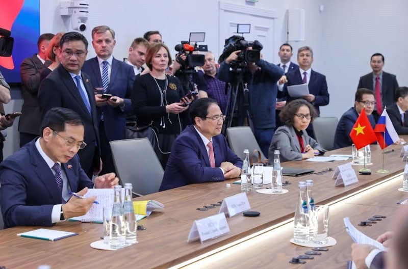 Thay mặt đoàn đại biểu cấp cao Việt Nam, Thủ tướng Chính phủ Phạm Minh Chính chúc mừng những thành tựu to lớn, toàn diện mà Liên bang Nga đạt được dưới sự lãnh đạo của Tổng thống Vladimir Putin, đồng thời đánh giá cao những đóng góp quan trọng của Hội đồng An ninh Nga và Thư ký Hội đồng Sergey Shoigu trong bảo đảm vững chắc ổn định chính trị, an ninh quốc gia và phát triển kinh tế - xã hội.