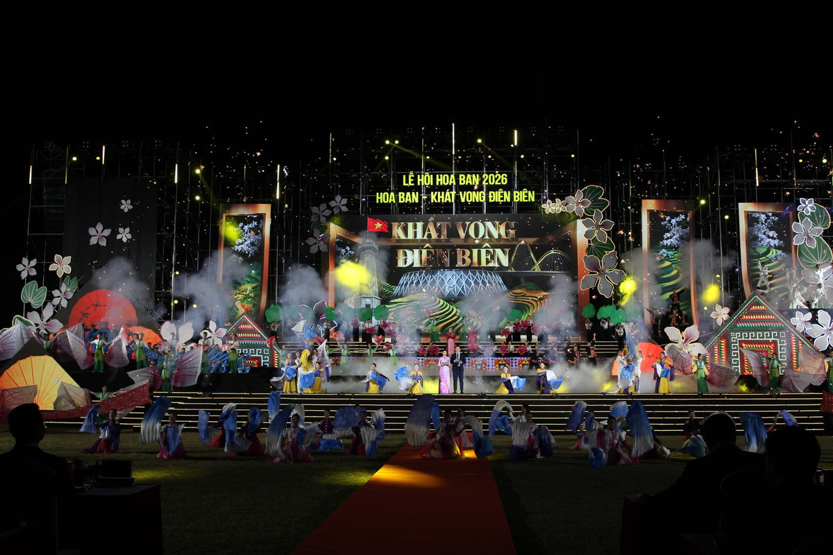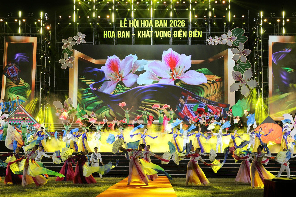 Tối 8/3, Lễ hội Hoa Ban năm 2026 với chủ đề “Hoa Ban - Khát vọng Điện Biên”, chính thức khai mạc tại sân vận động tỉnh Điện Biên. Thủ tướng Chính phủ Phạm Minh Chính dự lễ khai mạc.
