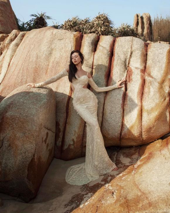 hông chỉ diện hàng loạt trang phục khoe vóc dáng nuột nà, mỹ nhân sinh năm 1998 còn gây ấn tượng bởi liên tục thay đổi bối cảnh khó nhằn, hết cheo leo mỏm đá lại ngụp lặn dưới nước.