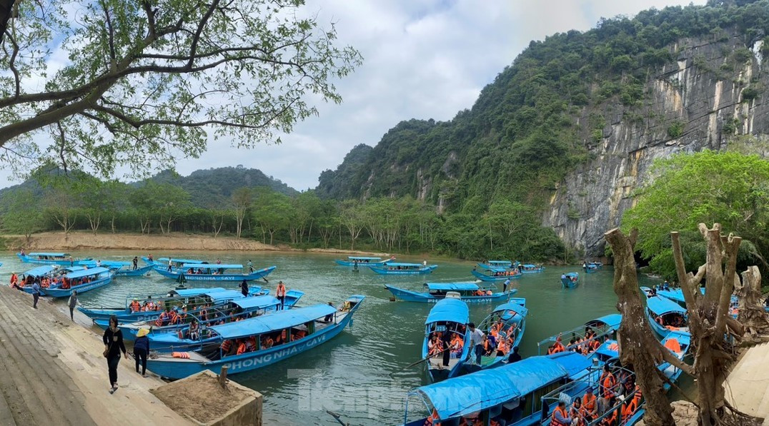 Thuyền nối đuôi chở khách du xuân ngắm động Phong Nha